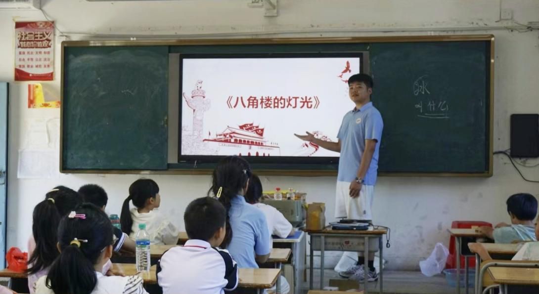 感悟于心,践之于行。实践团化身灯光的传递者,以 “守望逐光” 之名将革命的火苗带入井冈山毛泽东红军学校和吉州区白塘街道五里村新时代文明实践站的课堂中。《八角楼的灯光》主题课堂上,孩子们聚精会神,认真聆听着实践团成员讲述毛泽东在清苦环境中探索真理的故事。昏黄的八角楼灯光下,毛泽东为中国革命事业奋笔疾书的画面,仿佛就在眼前。孩子们被深深吸引,眼中闪烁着好奇与崇敬的光芒。实践团成员创设了红色文化教育系列课程,不仅让他们了解了那段波澜壮阔的历史,更在幼小的心灵中播下了红色的种子,激励着他们在未来的人生道路上,不畏艰难,努力奋进。