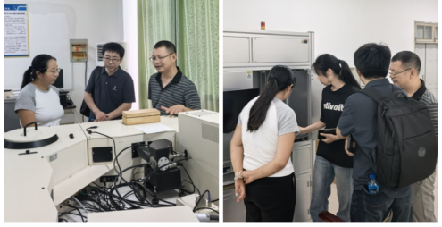 报告会后,钱森一行参观了江西省教育厅能量转换光电功能材料重点实验室,就特种闪烁玻璃等新型光电材料的研发和应用前景进行了现场指导,交流探讨高密度、高光产额和超快衰减闪烁玻璃的研究与应用。