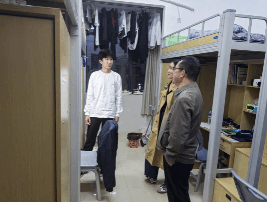 检查围绕宿舍用电安全、消防安全等方面展开。在检查过程中,胡正佩书记重点排查了是否存在违规电器使用、私拉乱接电线、堆放易燃杂物等安全隐患,同时对学生宿舍卫生状况进行了现场督导。陈如一副书记强调,宿舍是同学们在校生活的重要场所,希望同学们能进一步增强安全意识,自觉遵守宿舍管理规定,共同营造温馨和谐、安全有序的生活环境。