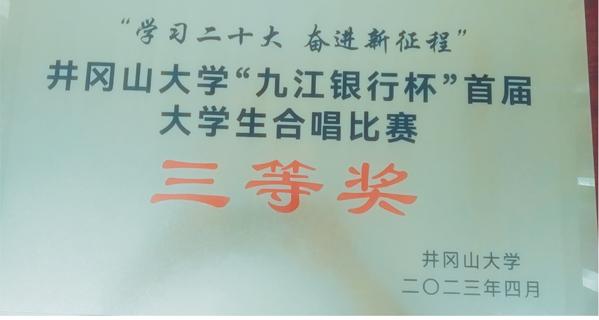在4月22日学校举行的“学习二十大 奋进新征程”九江银行杯首届大学生大合唱比赛中,我院合唱队以《你笑起来真好看》和《在太行山上》参赛曲目获得第四名、三等奖。