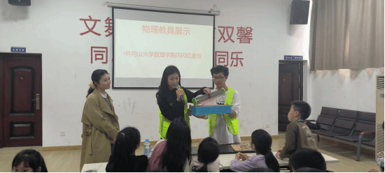 近日,井冈山大学数理学院“闪闪红星”班学员走进天玉镇童心港湾,为当地留守儿童开展了一场别开生面的"红色文化润童心,科学探索启智慧"主题志愿活动。通过红色故事宣讲、趣味物理实验展示及课后作业辅导三大板块,为孩子们带去知识与温暖的双重体验。