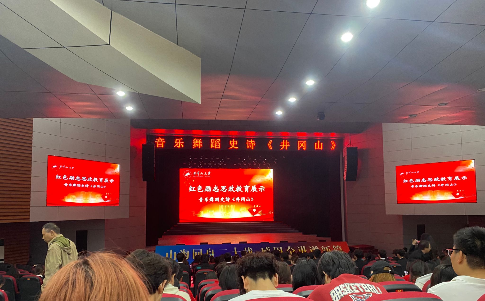 11月2日晚,学生会堂内灯火璀璨、氛围庄重,我校红色励志思政教学展示活动——音乐舞蹈史诗《井冈山》在此震撼上演。全校红色班级学生齐聚一堂,在沉浸式艺术体验中感悟红色精神,接受深刻的思政教育洗礼。
